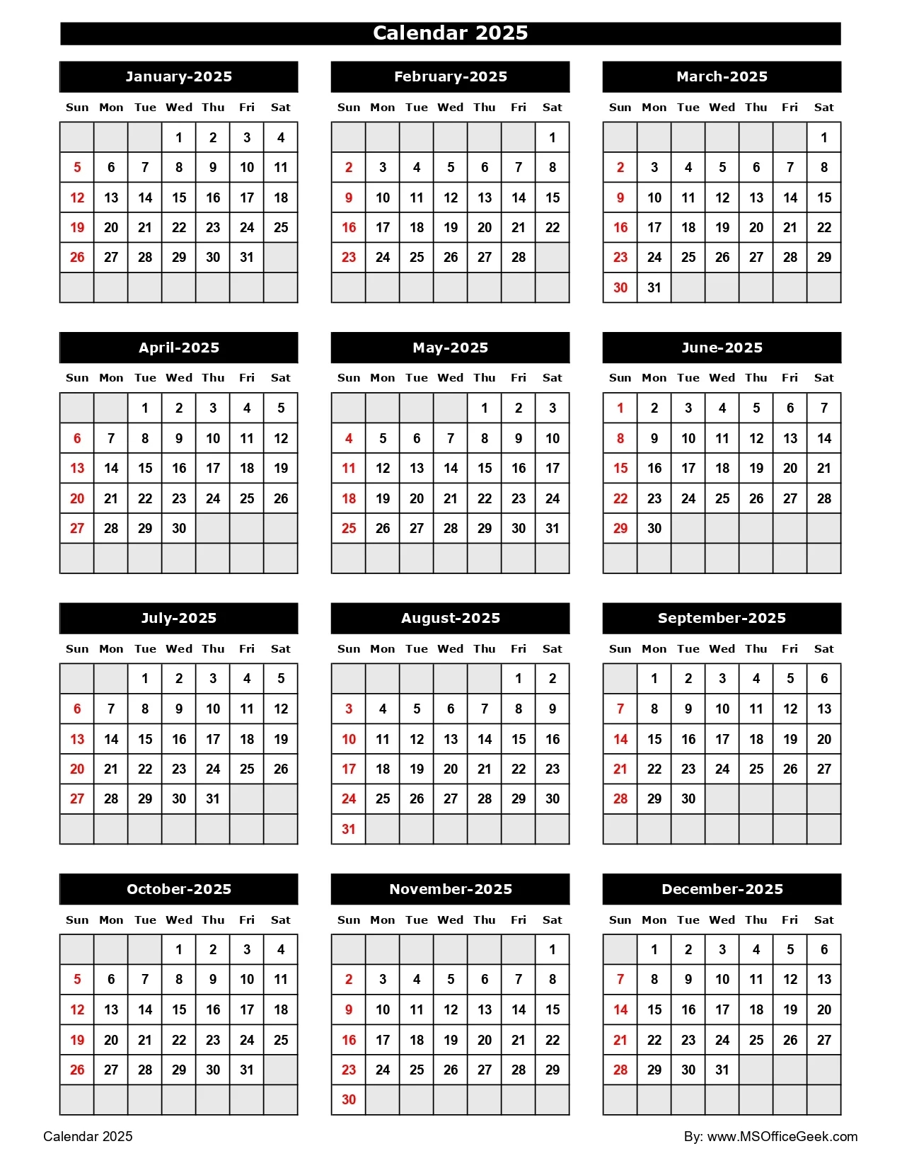 Ready To Use Printable Calendar 2025 MSOfficeGeek