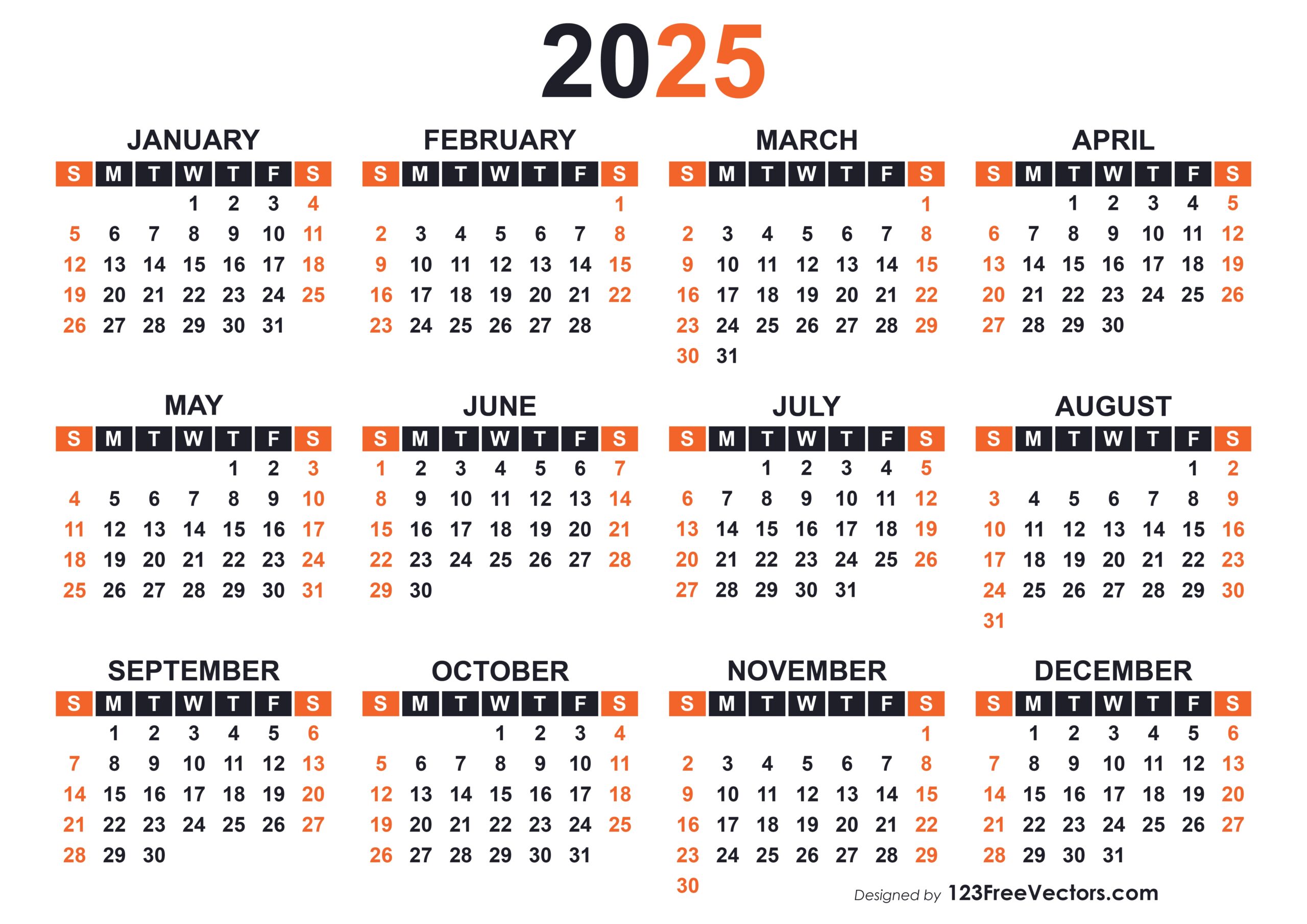 Free Download Yearly Calendar 2025 Printable