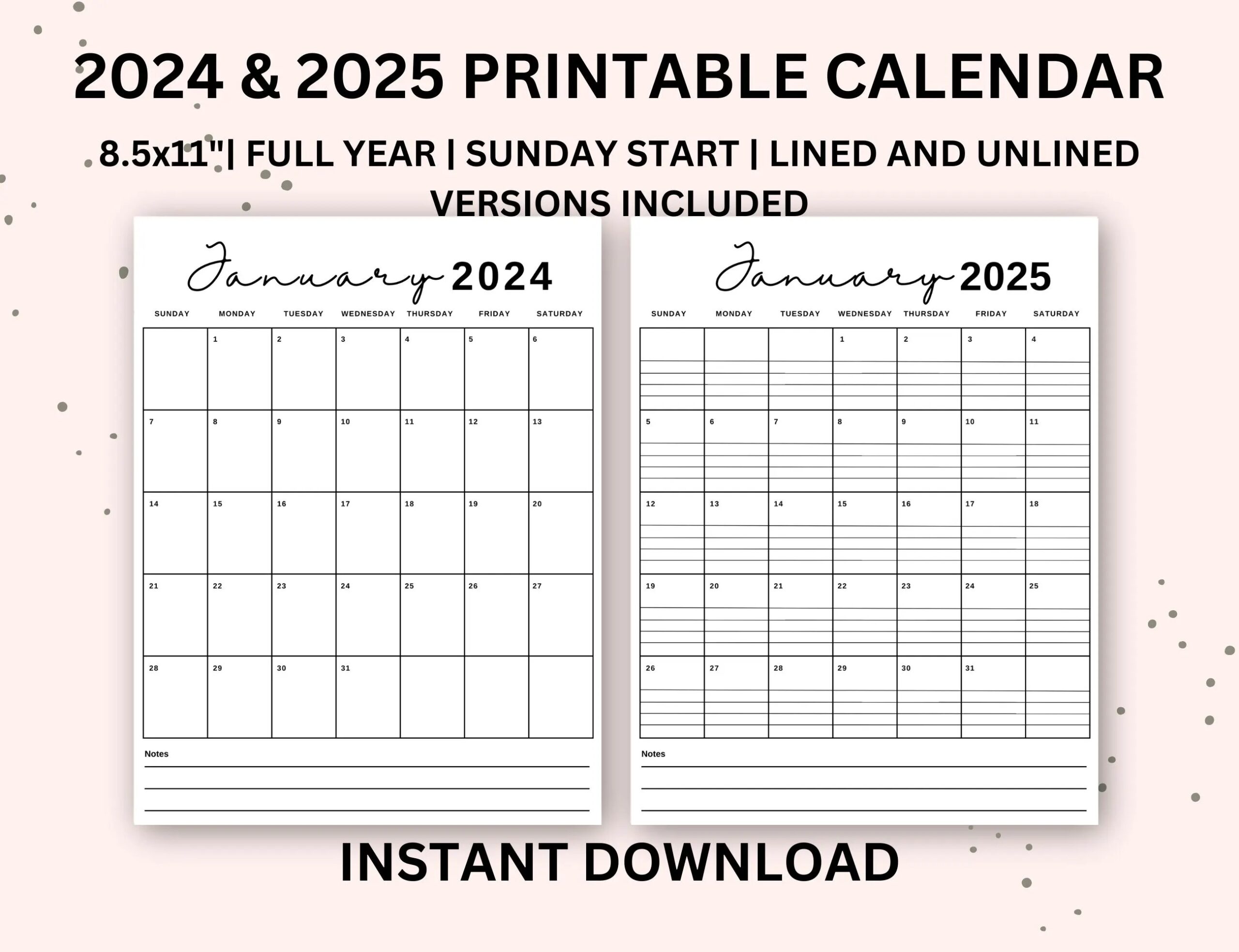 Printable Calendar 2024 2025 With Lines Calendar Printable Portrait Monthly Calendar With Lines Lined Monthly Calendar Etsy