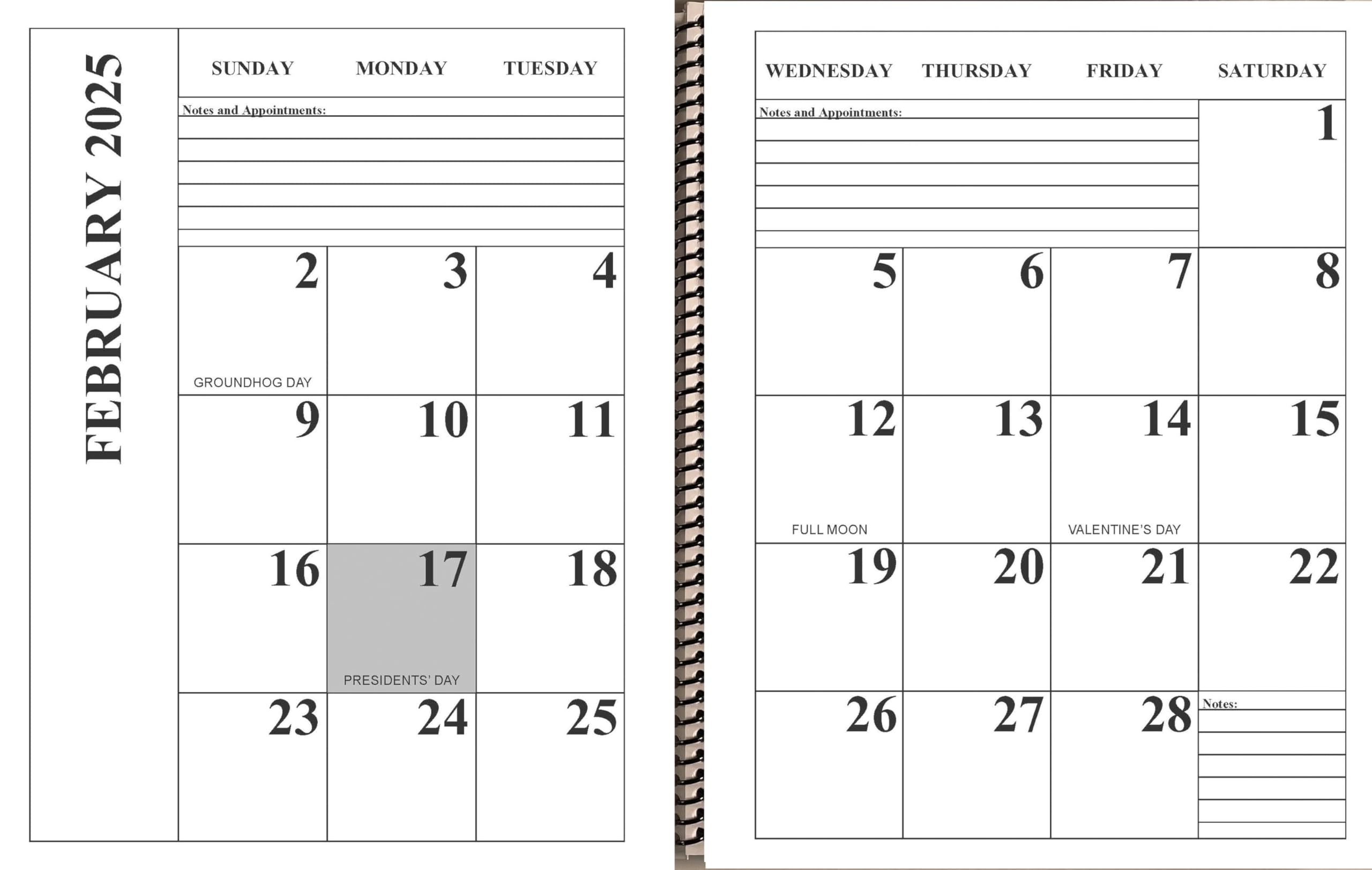 Large Print Printable Blank Calendar 2025