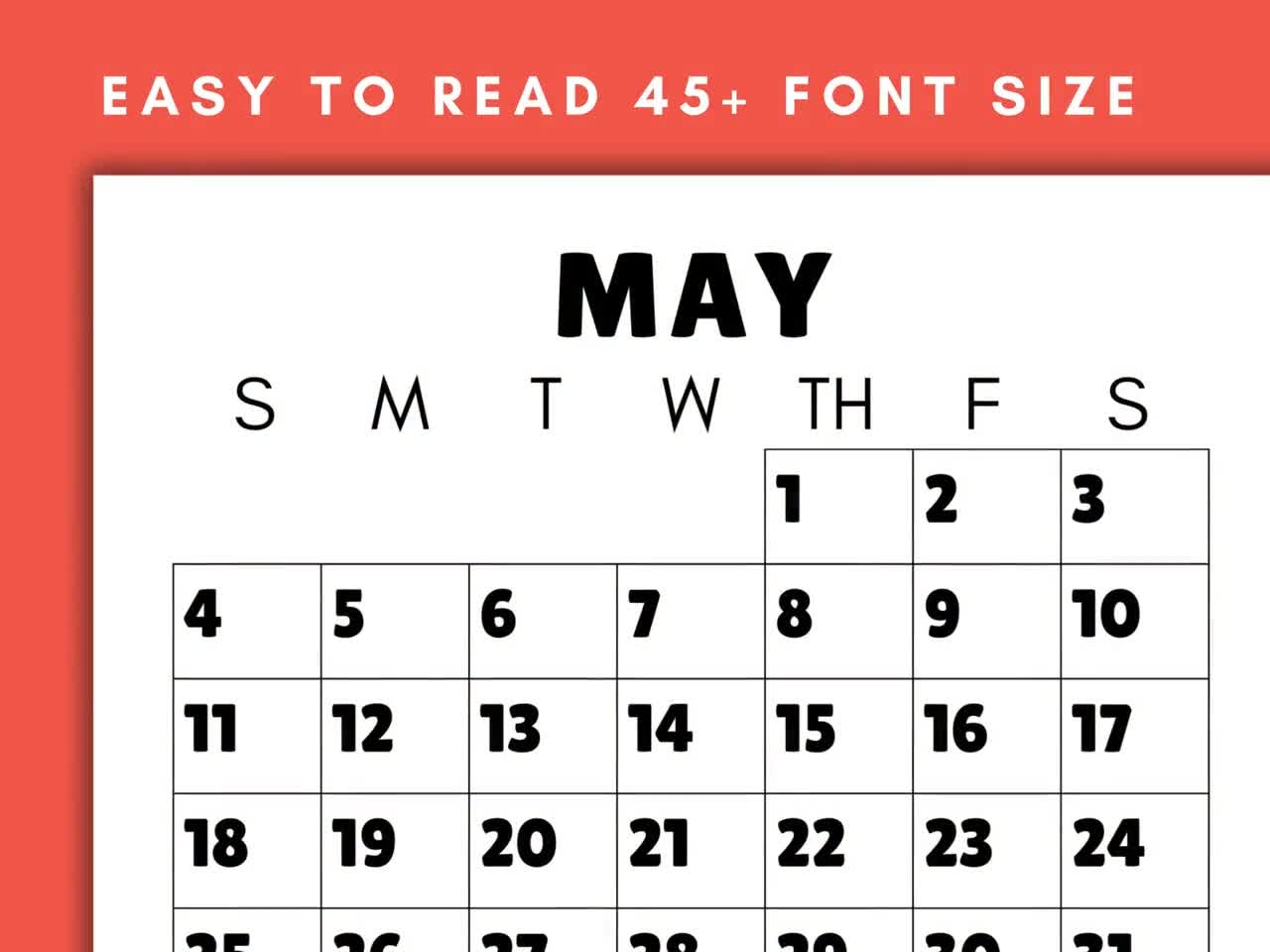 Large Print Monthly Calendar 2025 Senior Citizen Calendar With Large Numbers Sunday Start Printable PDF Etsy