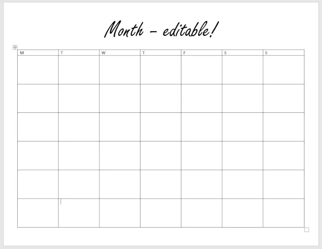 Basic Calendar Month Microsoft Word Template Editable Customizable Etsy