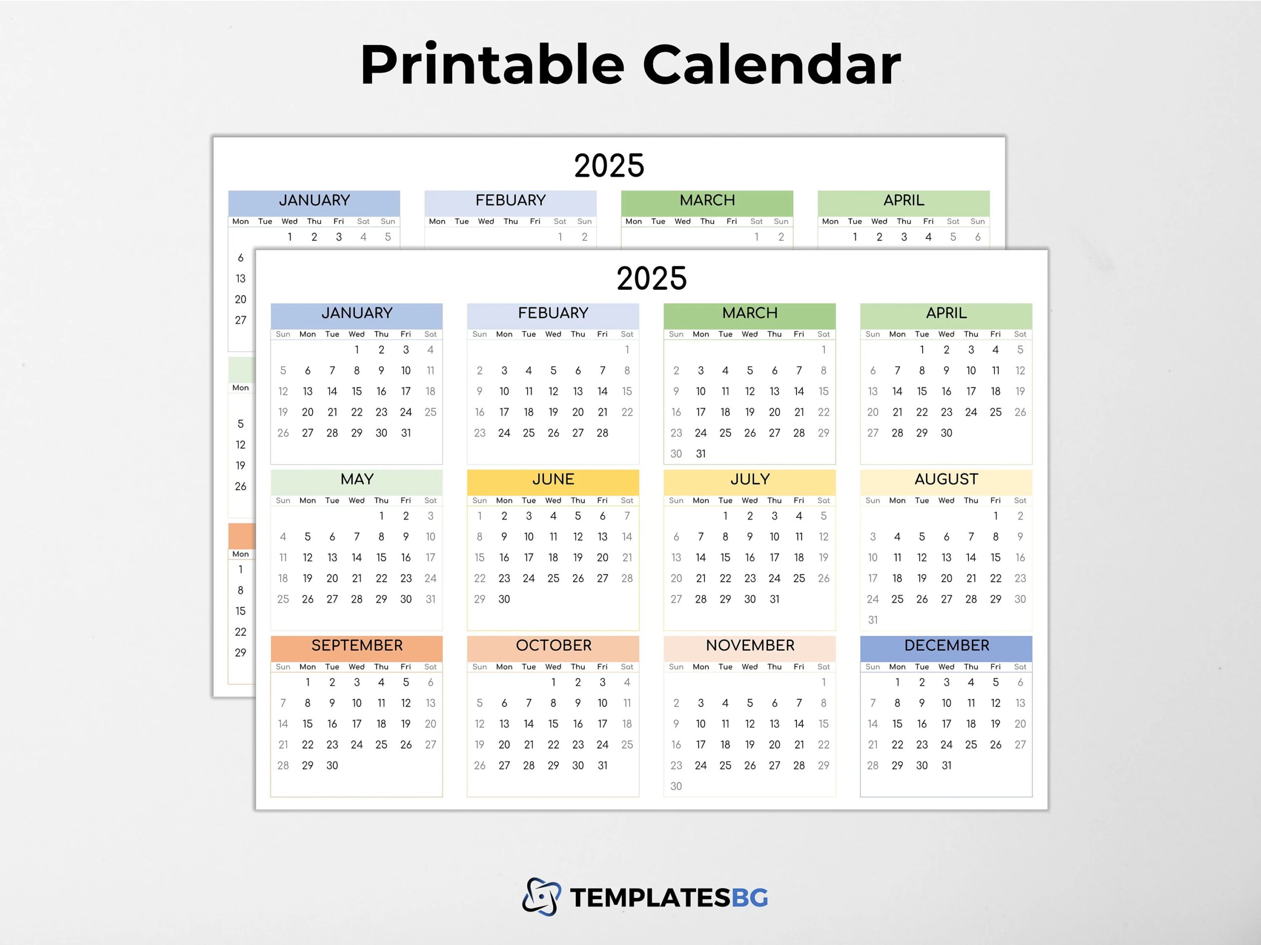 Calendar 2025 PDF Yearly Calendar Template Printable Calendar Blank Calendar 2025 Calendar Excel Template Etsy