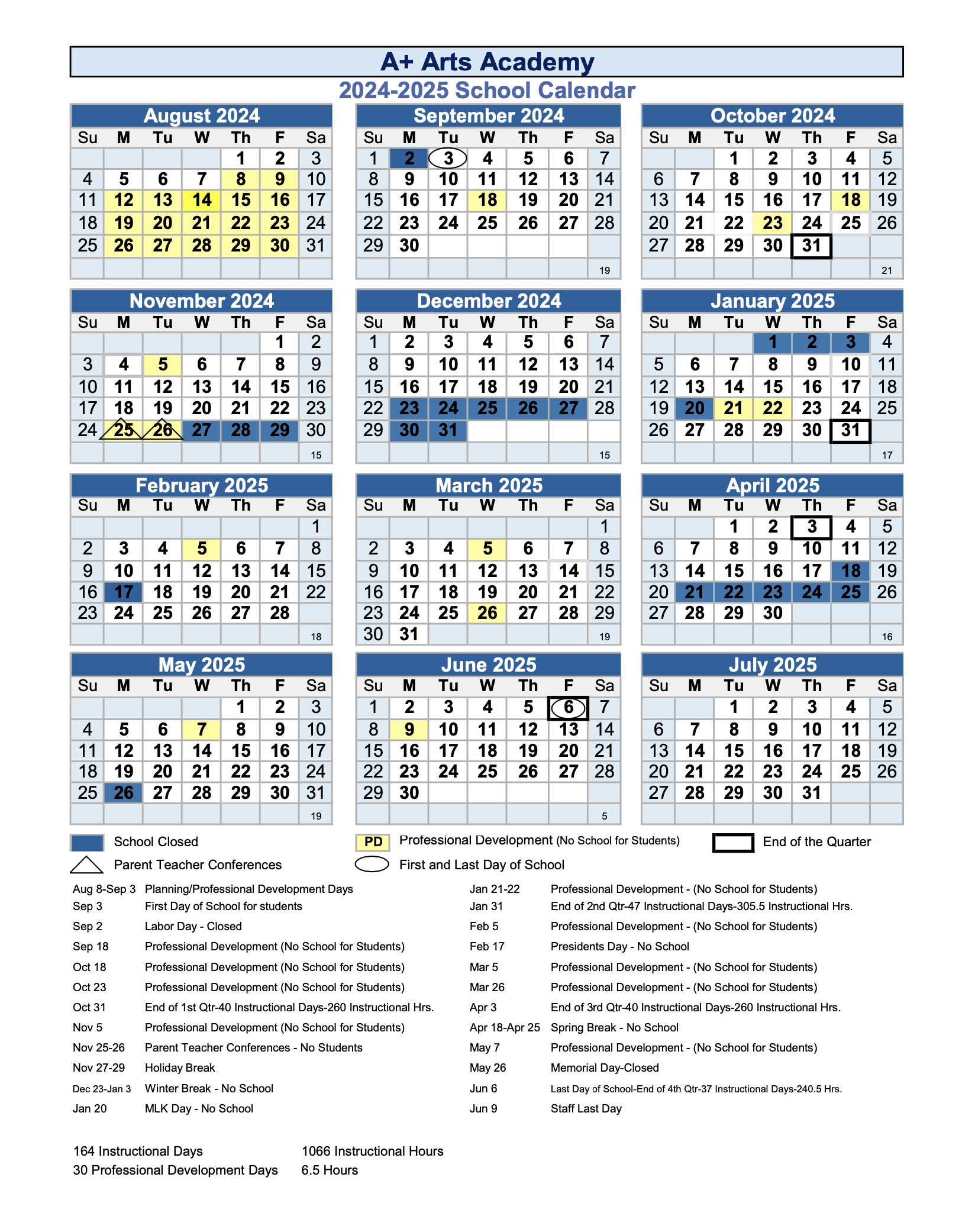 2024 2025 School Calendar A Arts Academy