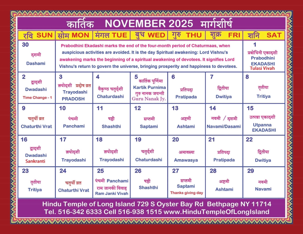 November 2025 Hindu Calendar: Festivals and Celebrations
