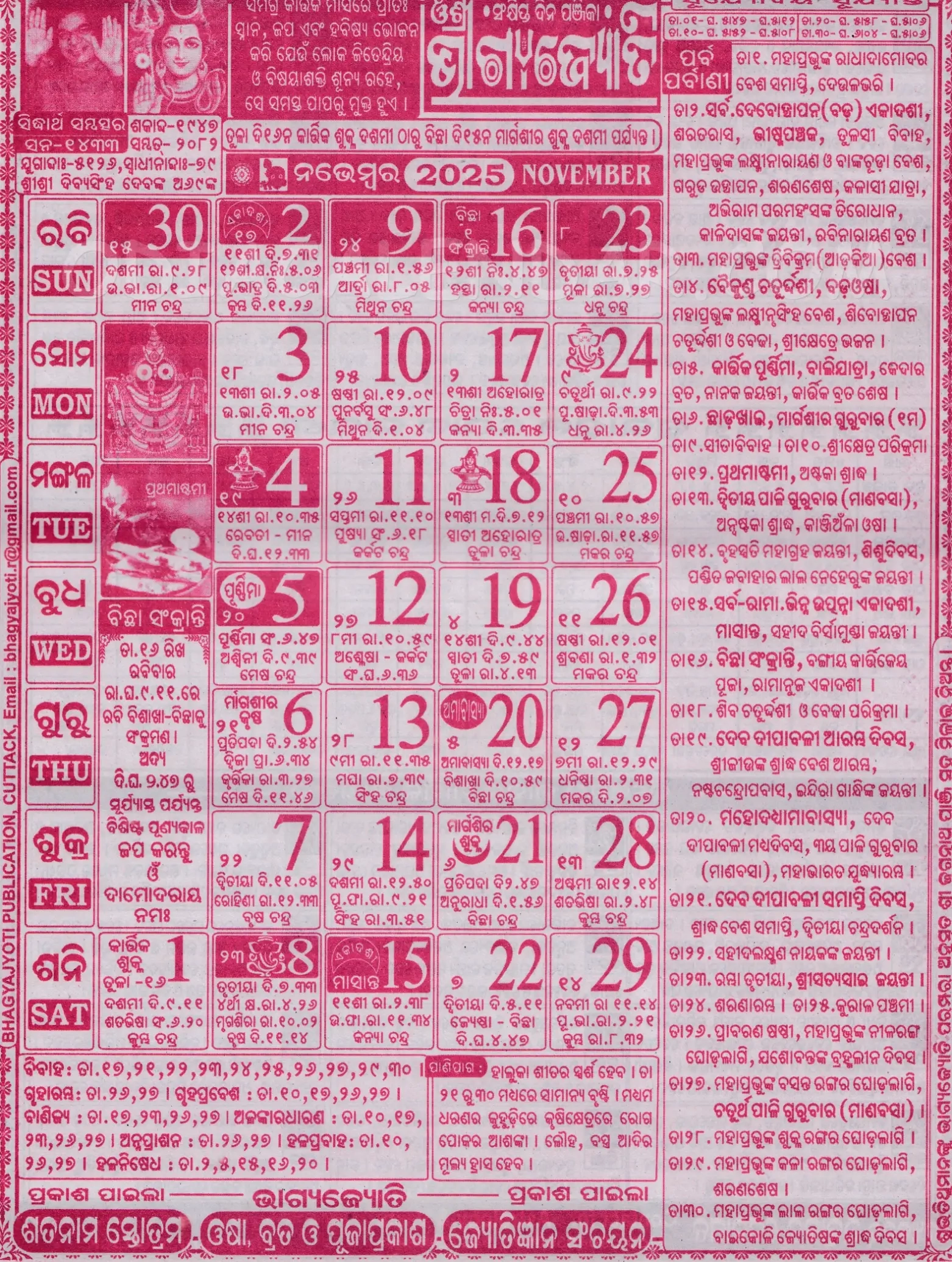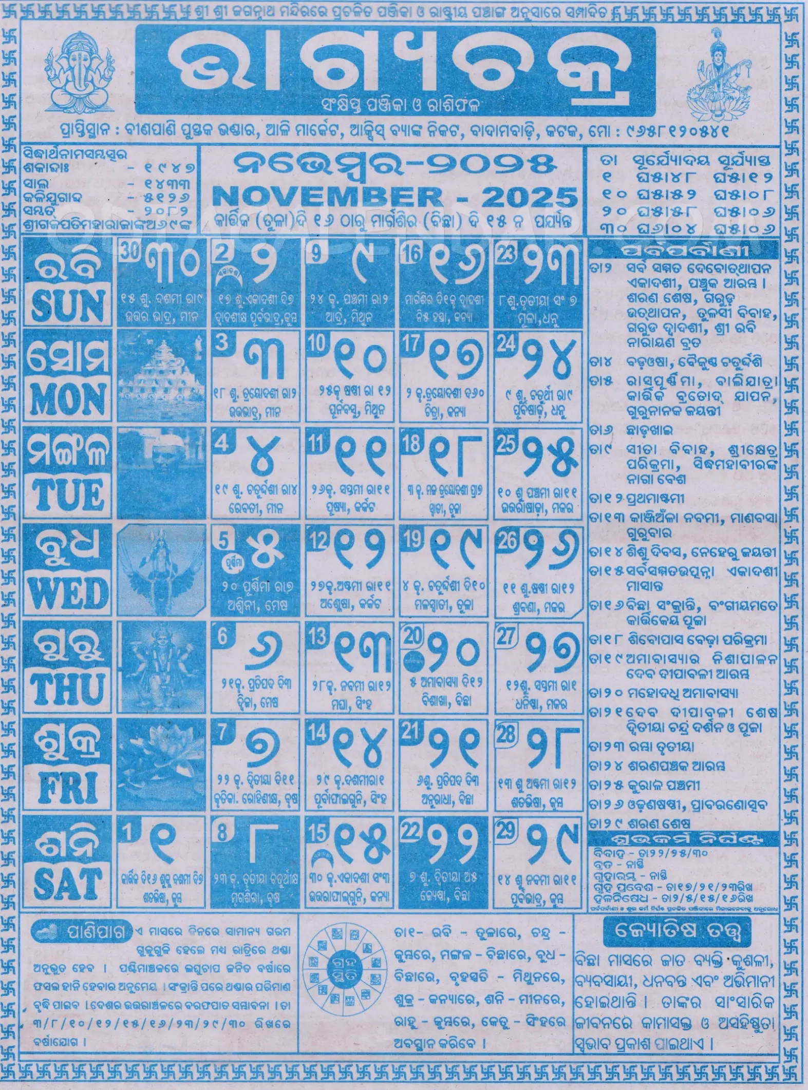 Bhagyachakra Odia Calendar November 2025 Festivals Auspicious Days And Holidays