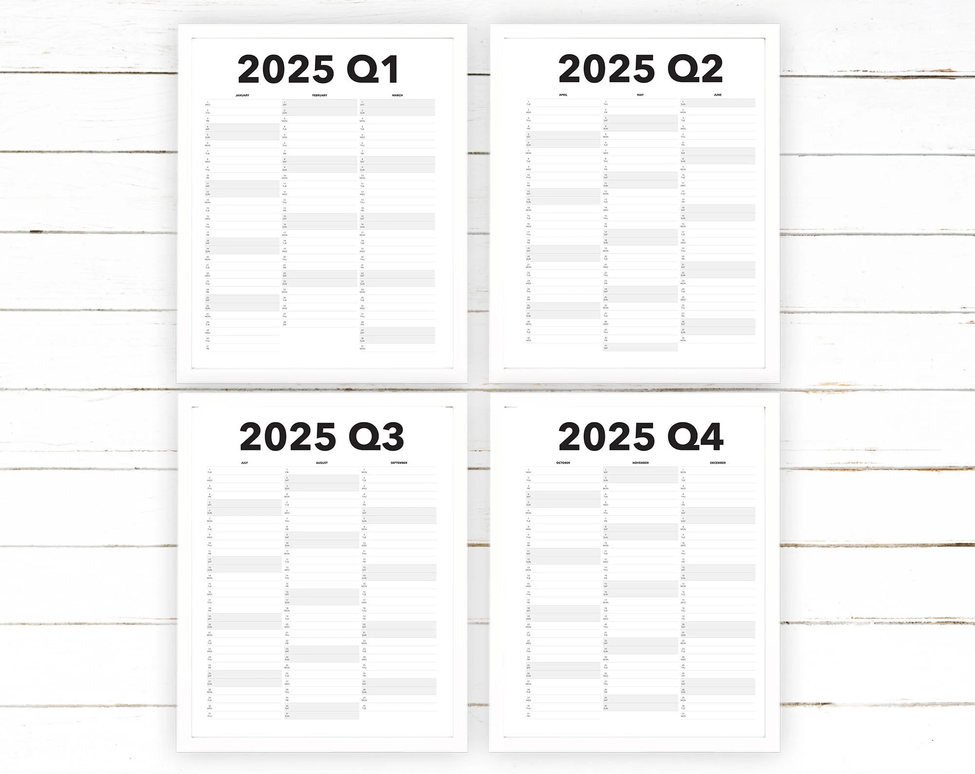2025 Quarterly Calendar Printable Blank Dated Quarterly Year View Extra Large Wall Calendar Digital Printable Etsy