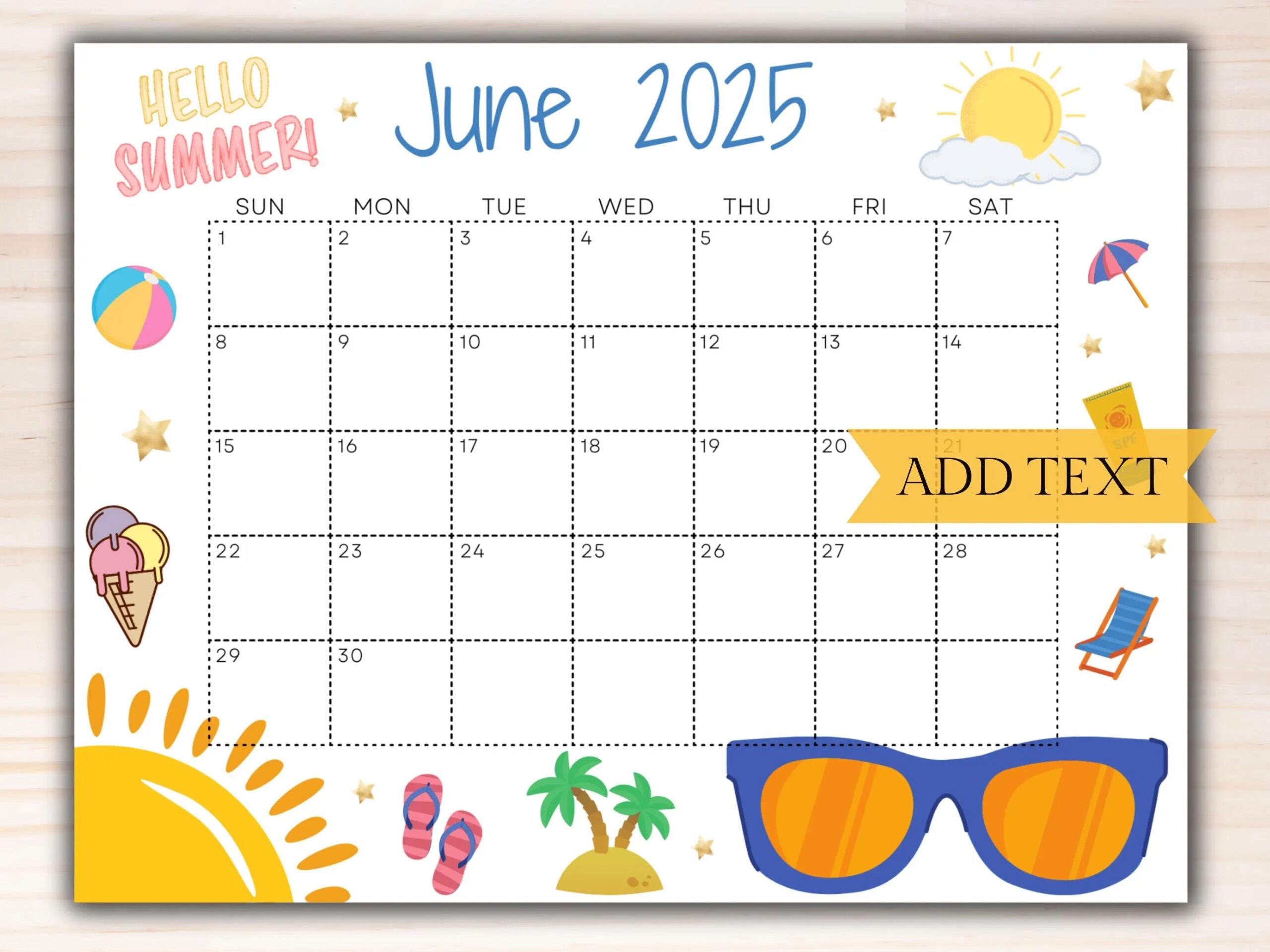 EDITABLE June 2025 Wall Calendar Printable Classroom Calendar Cute Summer Calendar With Sunglasses Monthly Calendar Family Calendar Etsy