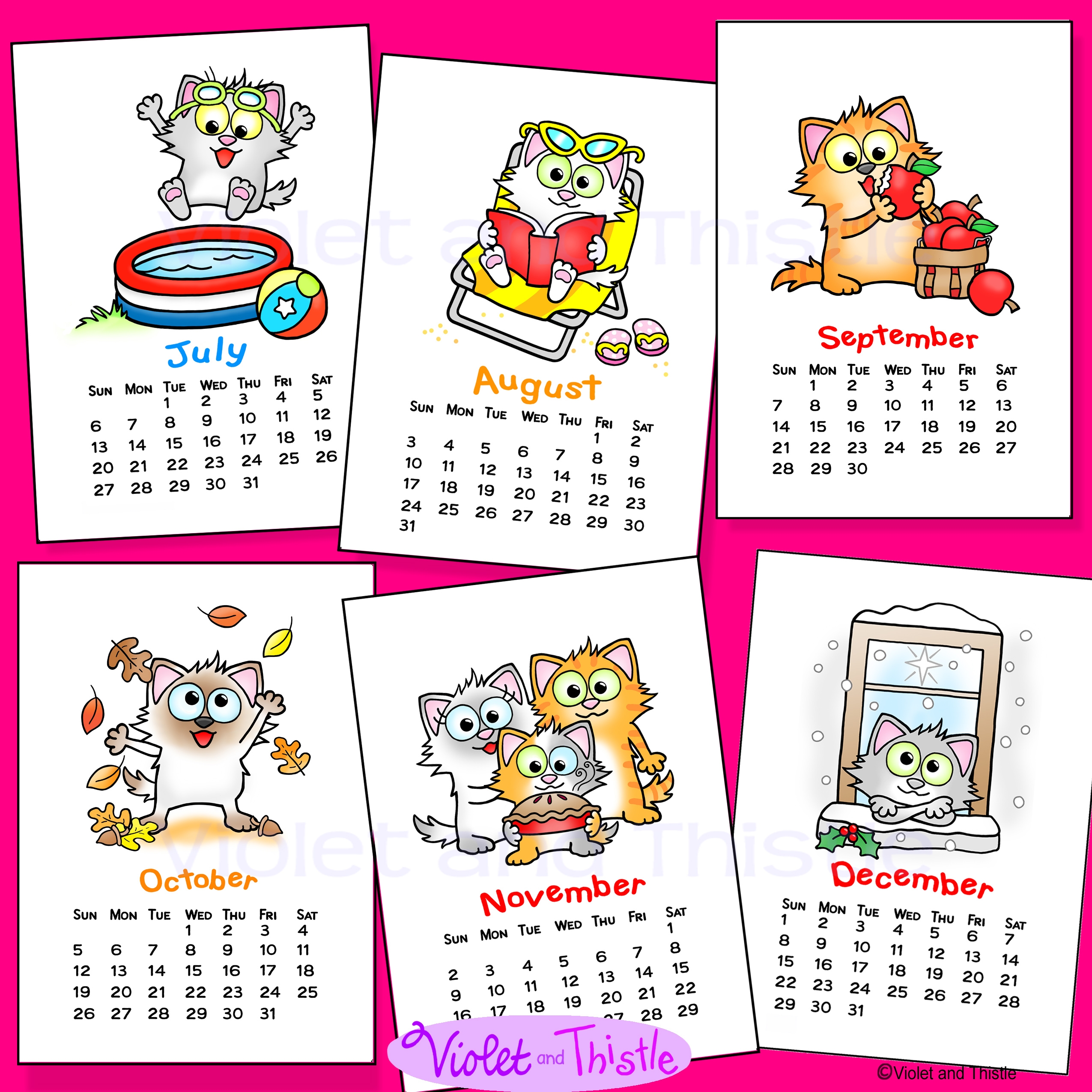 2025 Cat Calendar Monthly Printable Year Long Cute Cats Parent Christmas Gift Teacher Appreciation Made By Teachers