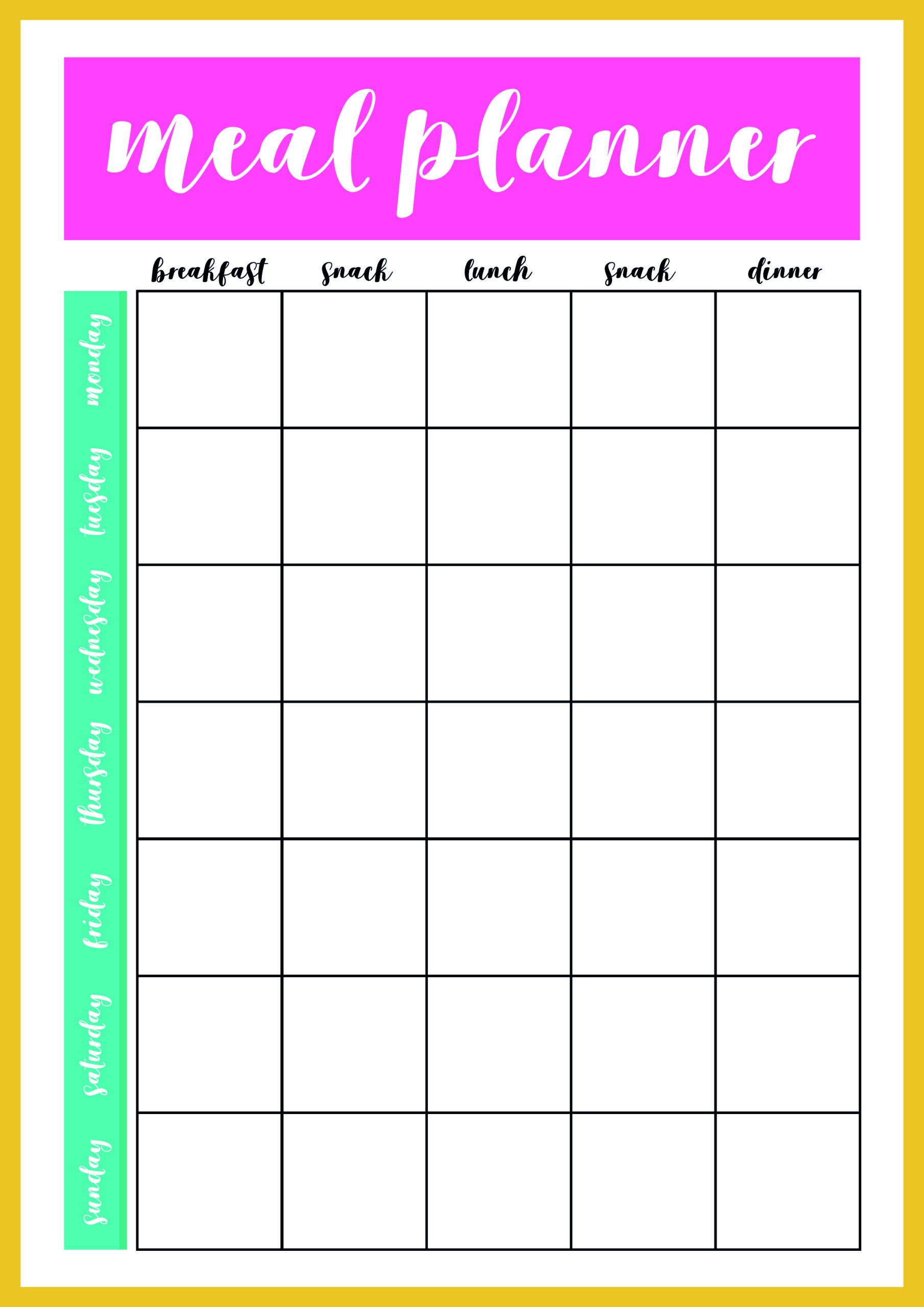 Download Printable Weekly Meal Plan Template PDF