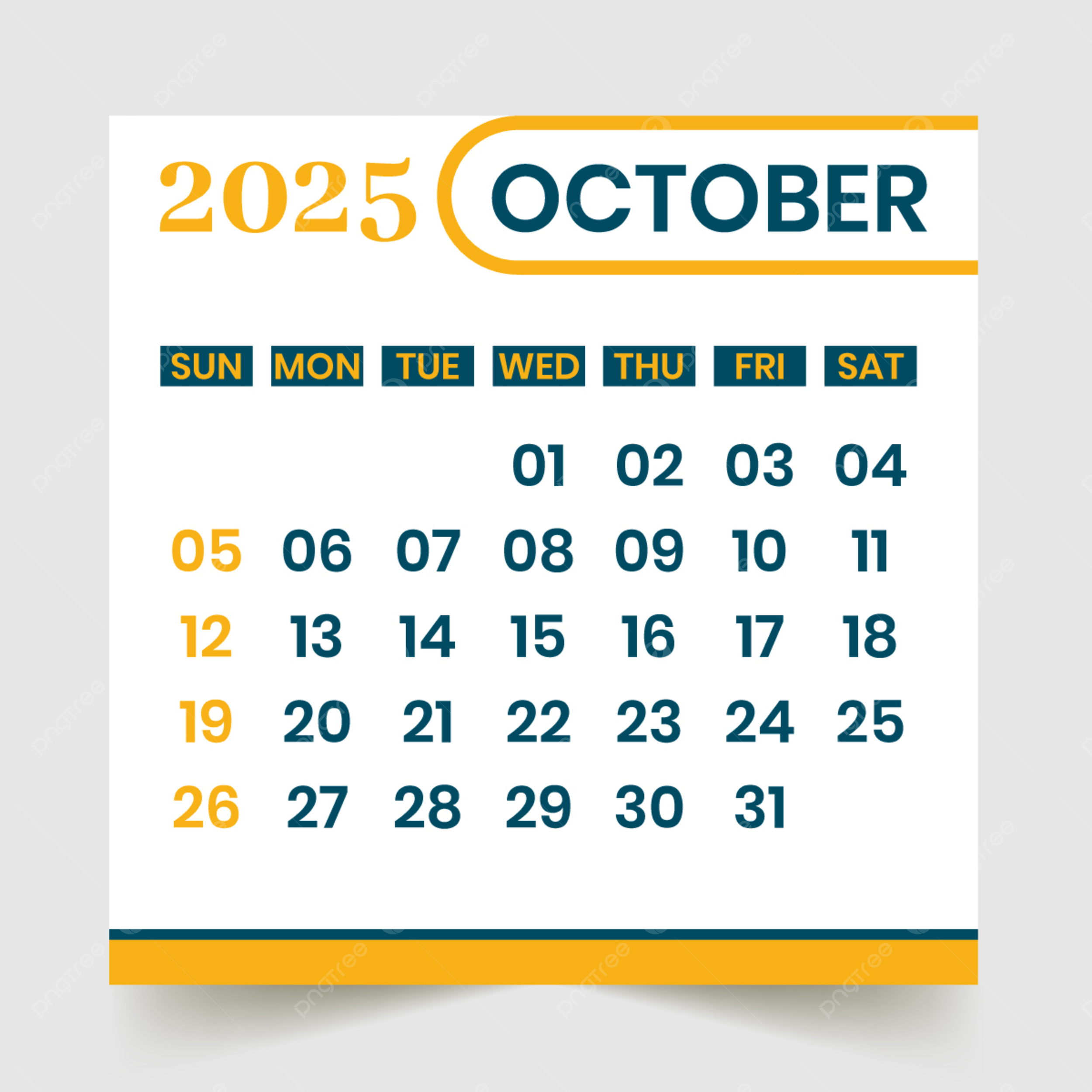 October Calendar 2025 Vector Template Download On Pngtree