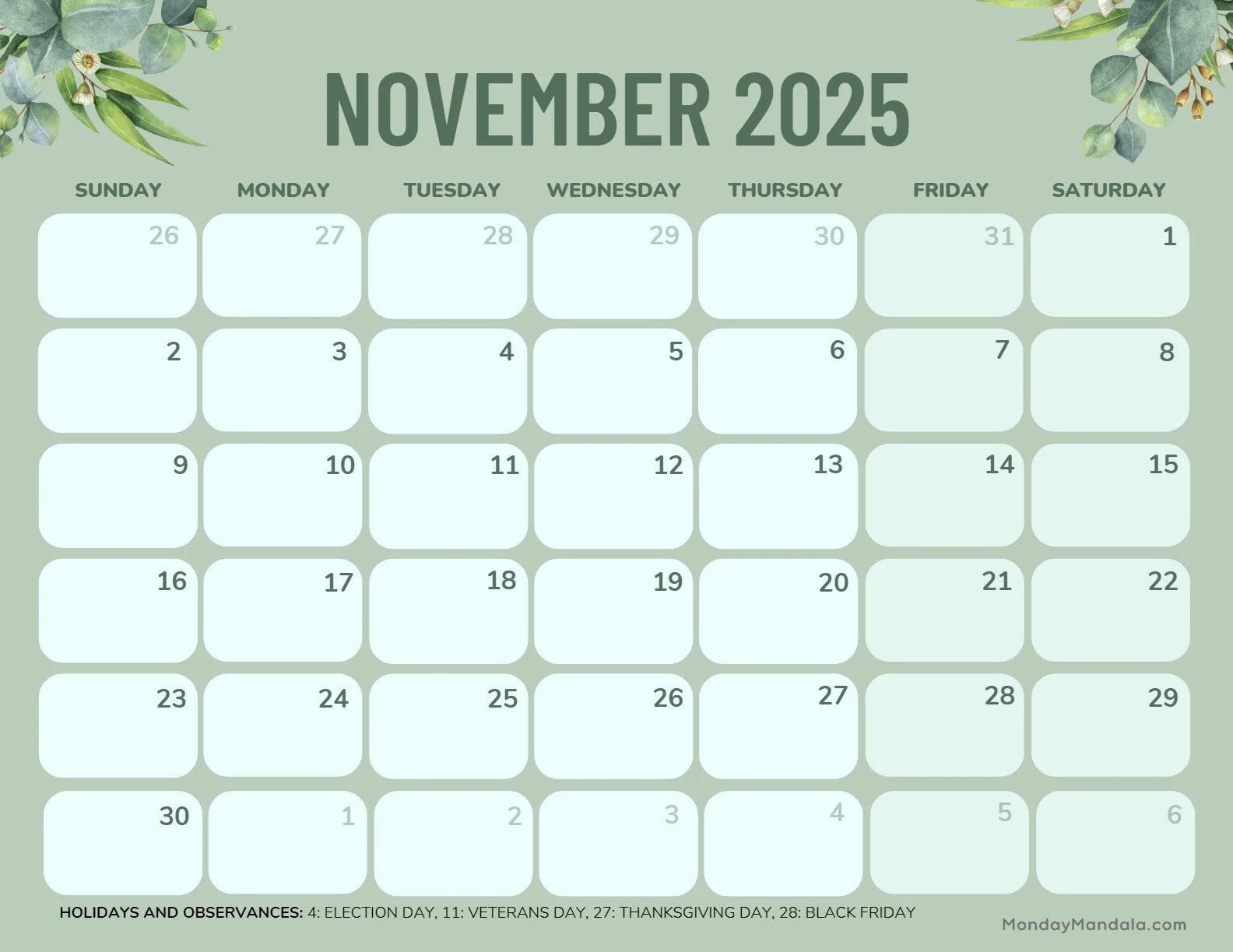 In conclusion, a printable calendar for November 2025 can be a valuable tool in helping you stay organized and on top of your commitments. With a variety of designs to choose from and the ability to customize to your liking, using a printable calendar can make planning your month a breeze. So why not give it a try and see the difference it can make in your daily life?