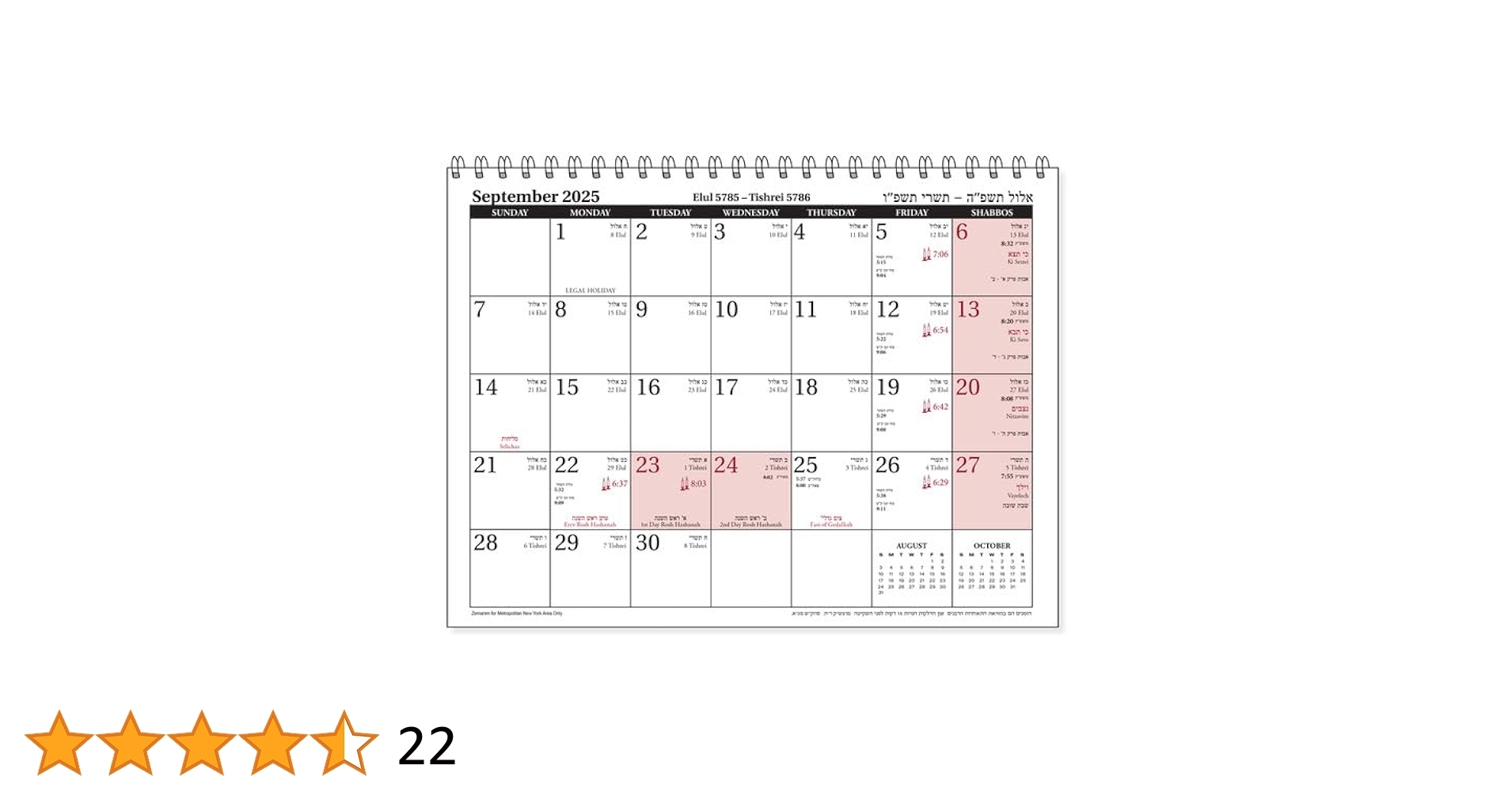 Amazon Jewish Wall Calendar Year 5786 2025 2026 Spiral Bound 13 Month Calendar September 2025 September 2026 Hebrew Calendar 5786 Office Products