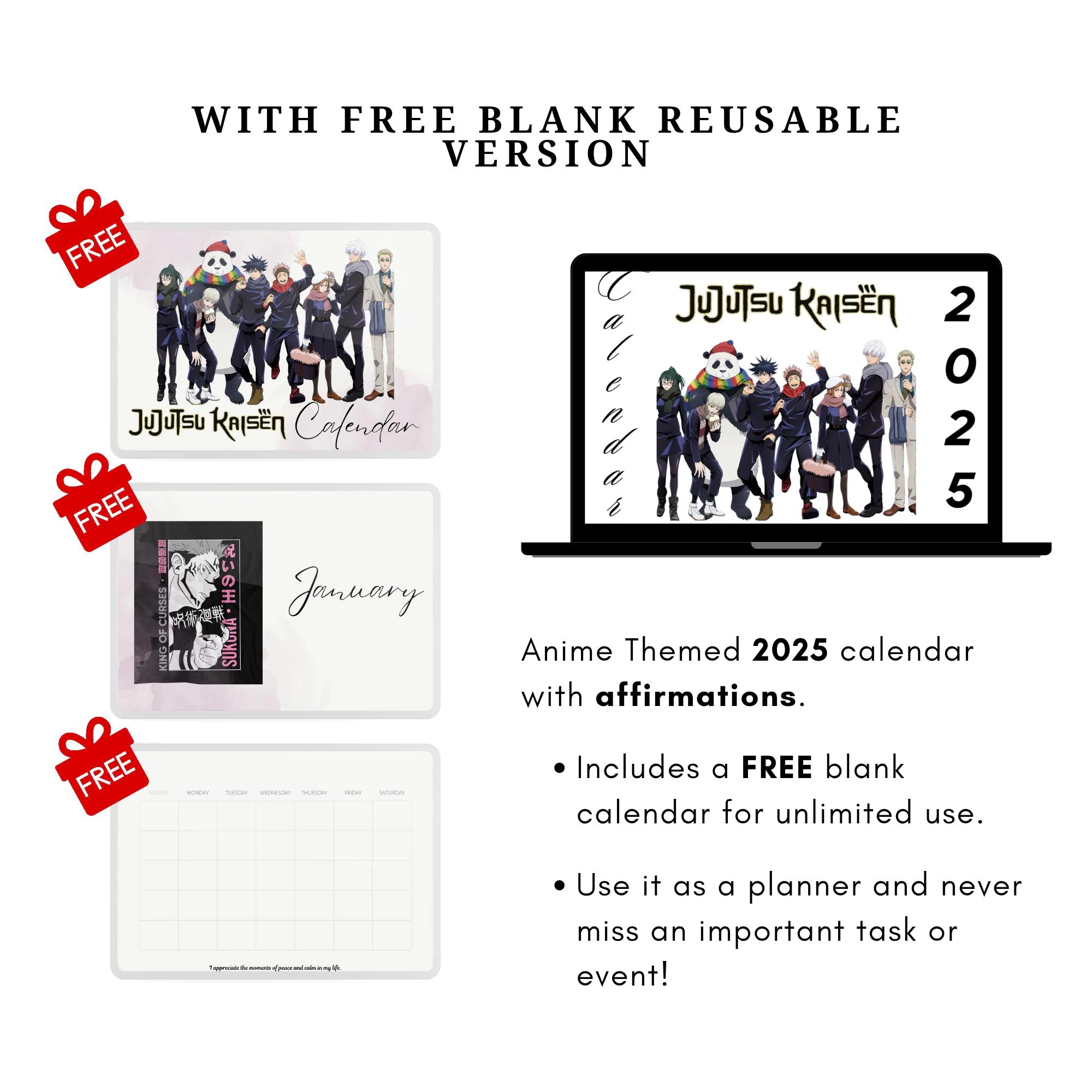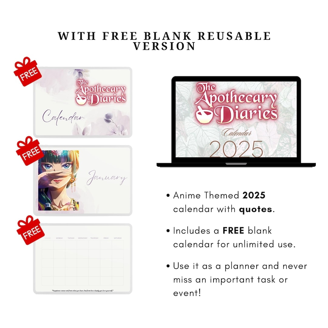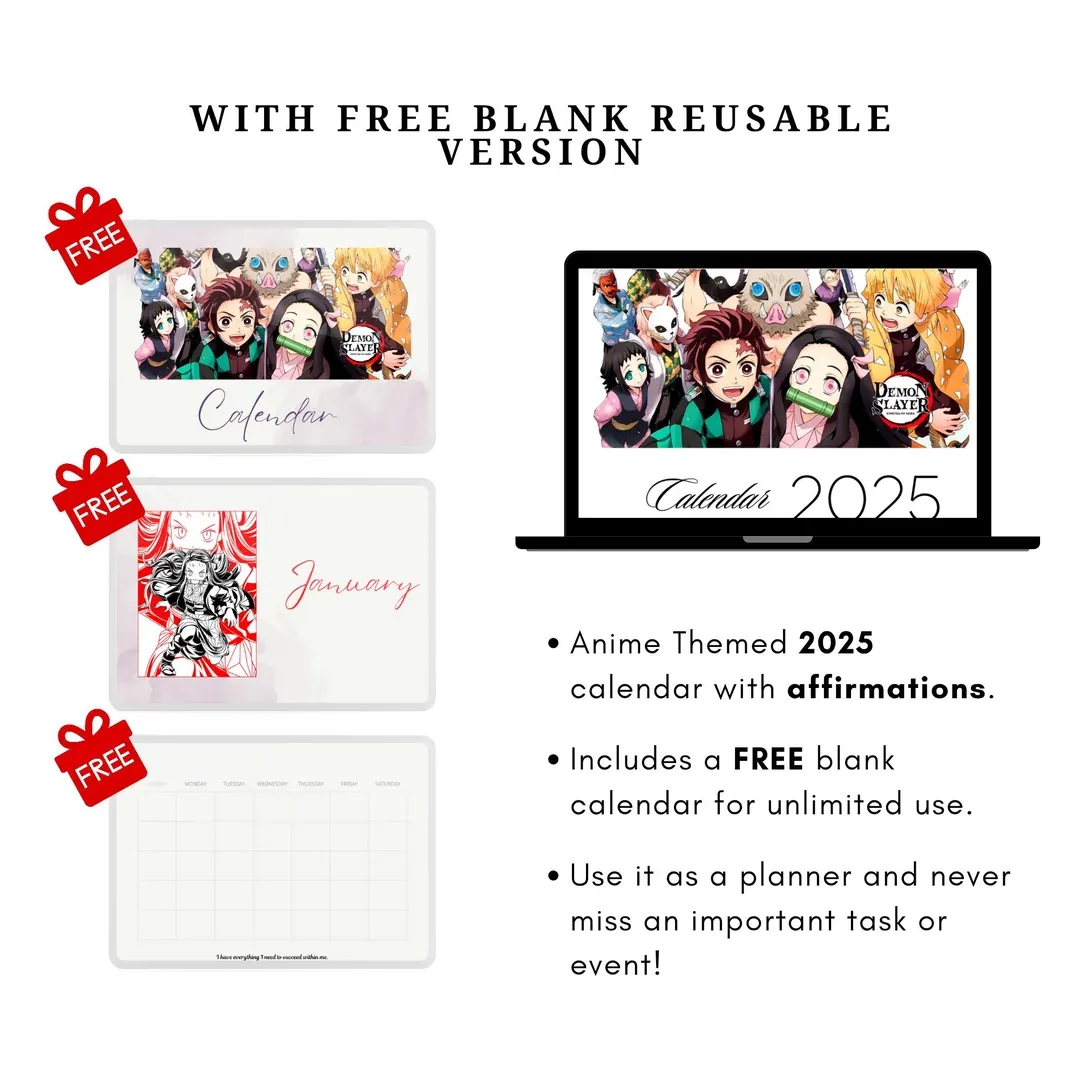 Anime Digital Printable Instant Download 2025 Calendar With FREE Blank Reusable Schedule Organizer For Unlimited Use Money Saver With Quotes Etsy