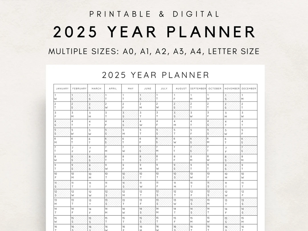 2025 Yearly Planner Printable Yearly Planning Calendar Calendar Poster Digital Calendar 2025 Calendar 2025 Planner Yearly Overview Etsy