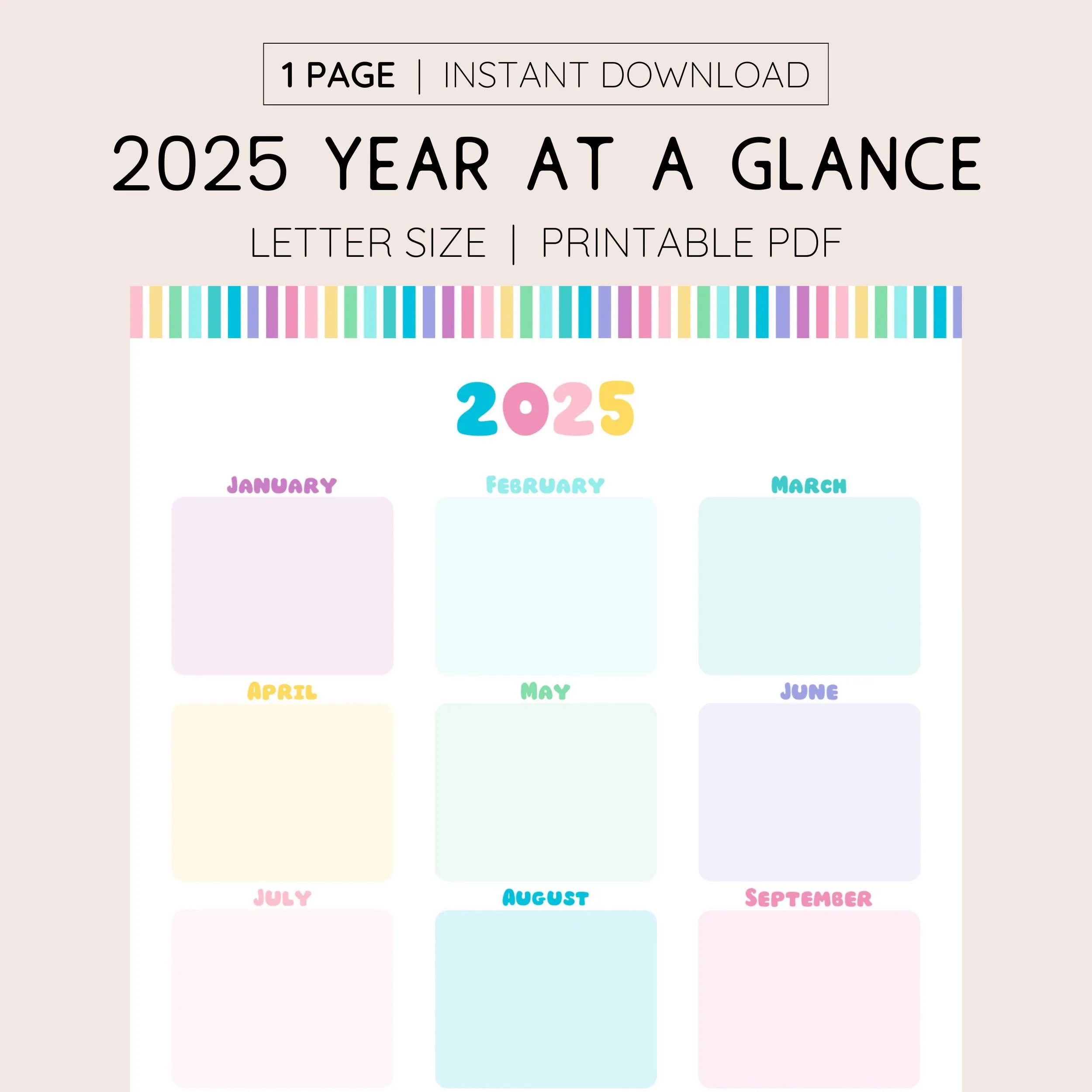 Full Year Calendar 2025 2025 Monthly Planner 2025 Rainbow Yearly Calendar Calendar Printable 2025 Wall Planner Wall Calendar 2025 Etsy